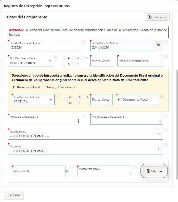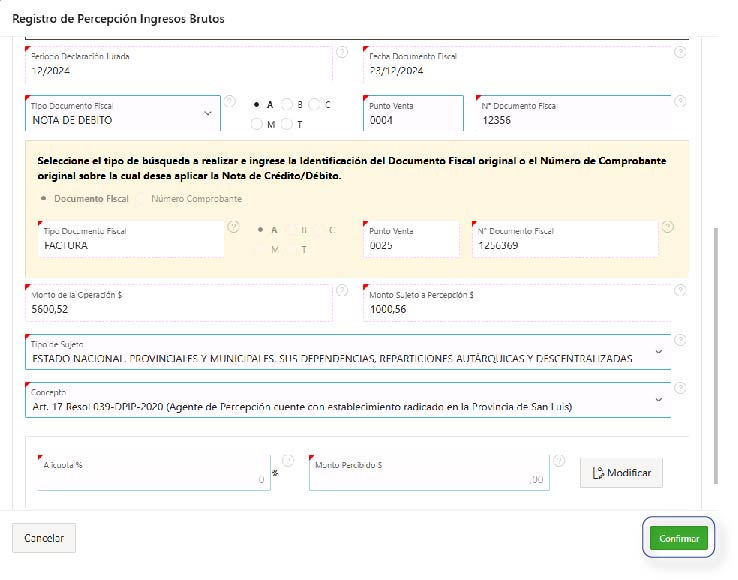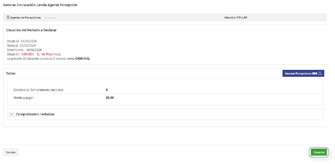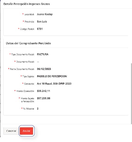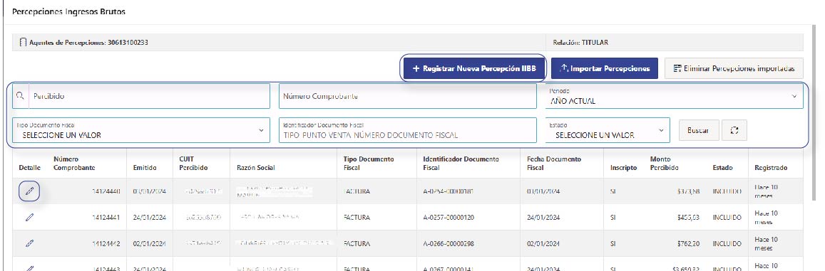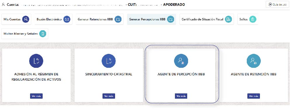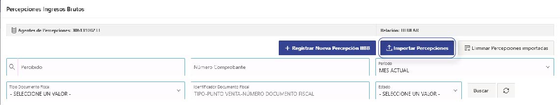Esta funcionalidad estará disponible si el Contribuyente está inscripto como Agente de Percepción de Ingresos Brutos en la Dirección Provincial de Ingresos Públicos.