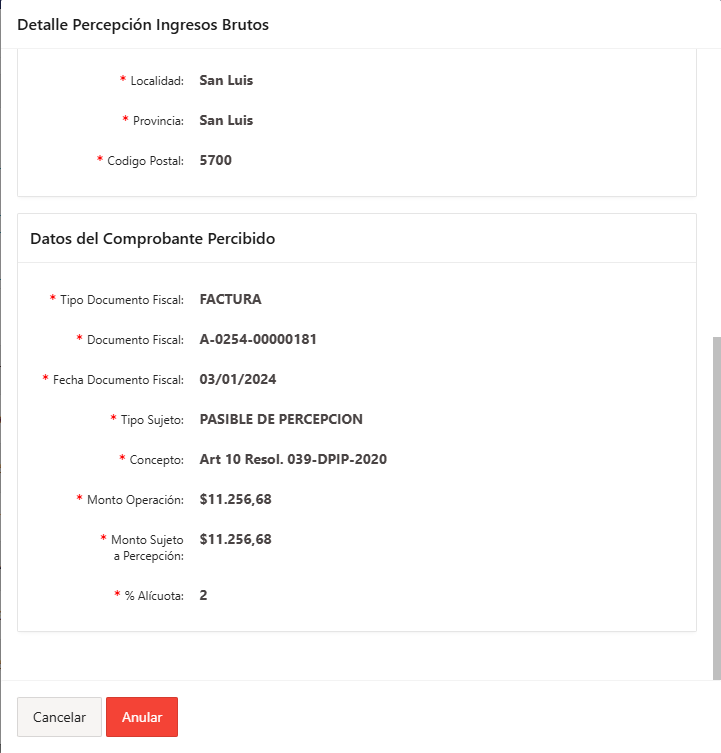 DETALLE DEL COMPROBANTE DE PERCEPCIÓN