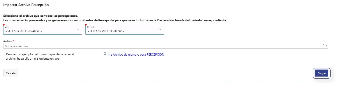 Seleccioná el archivo y el período para importar, luego presioná ‘Cargar’