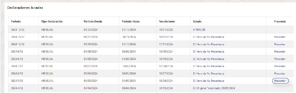 Seleccioná el período que deseas presentar