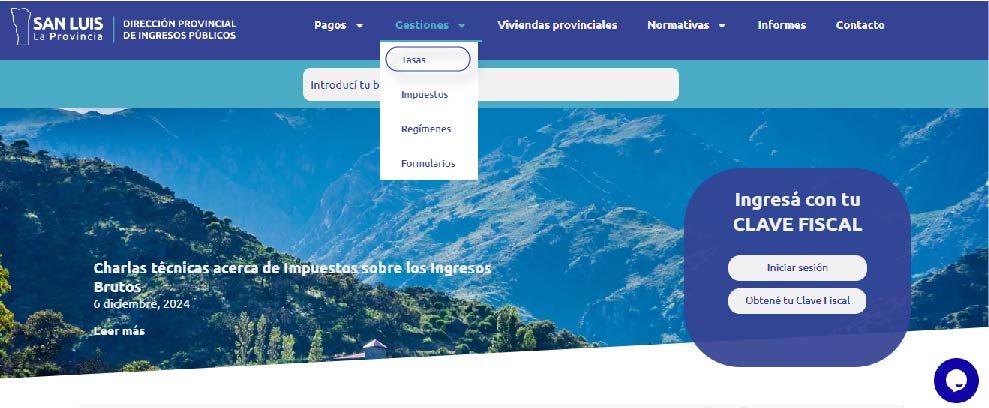 Dentro de la Página Web de la Dirección Provincial de Ingresos Públicos, hacé clic en ‘Gesiones’ —-> ‘Tasas’