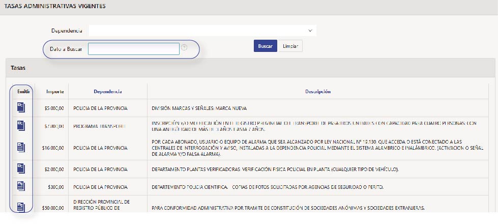 Buscá y seleccioná lsa tasas que querés obtener; luego, hacé clic en el botón “Emitir”