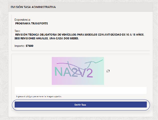 Cargá el código de seguridad y hacé clic en ‘Emitir Tasa’