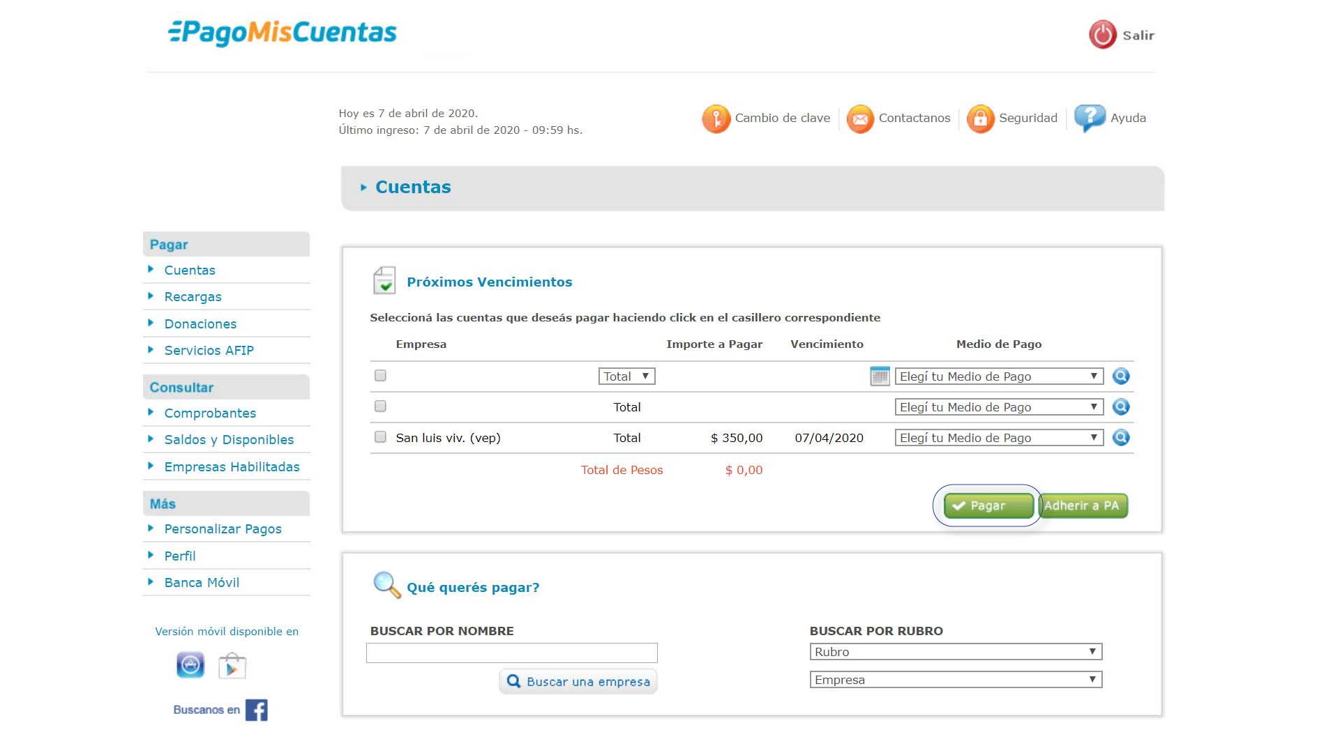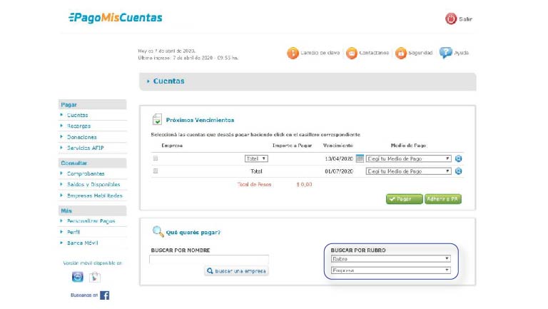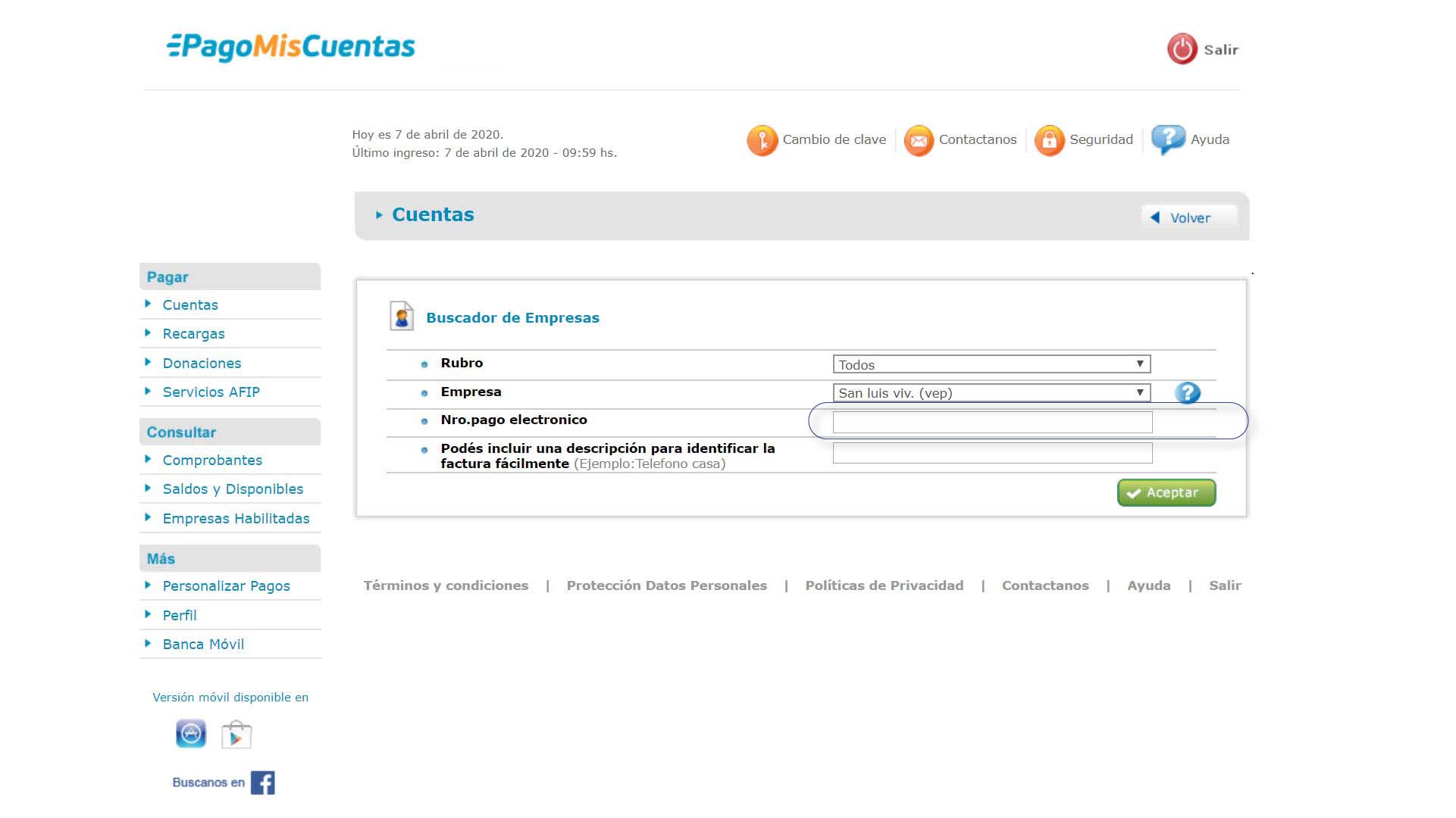 Con el código de pago electrónico suministrado dirigite a tu Homebanking (Banelco) y de ahí, a ‘Pago mis cuentas’