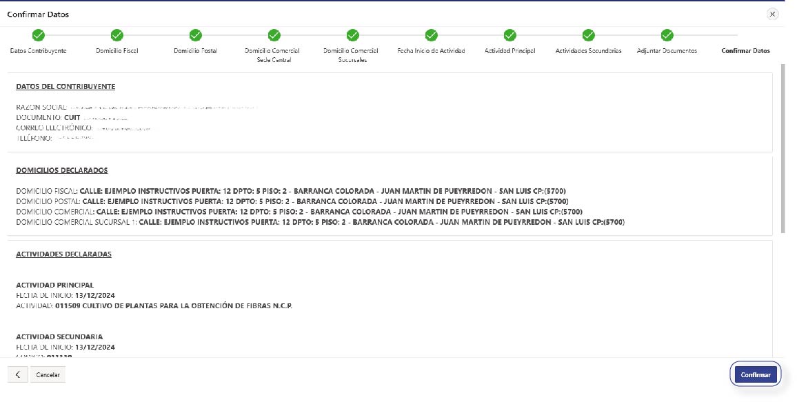 Verificá los datos cargados, y presioná ‘Confirmar’ para avanzar en el trámite