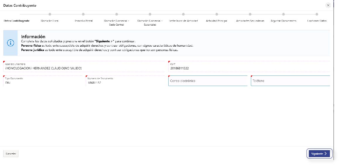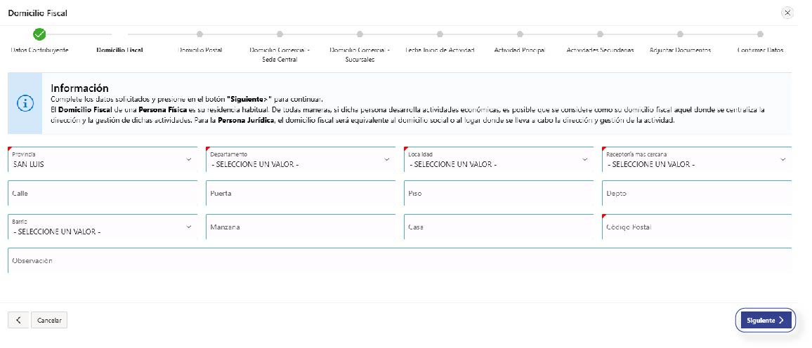 Completá los datos requeridos del ‘Domicilio Fiscal’ y presioná ‘Siguiente’