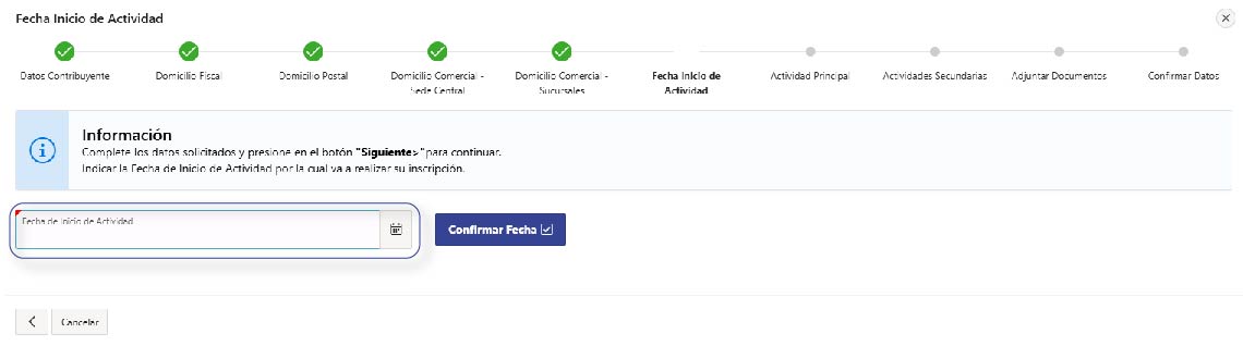 Seleccioná ‘Fecha de inicio de la actividad’