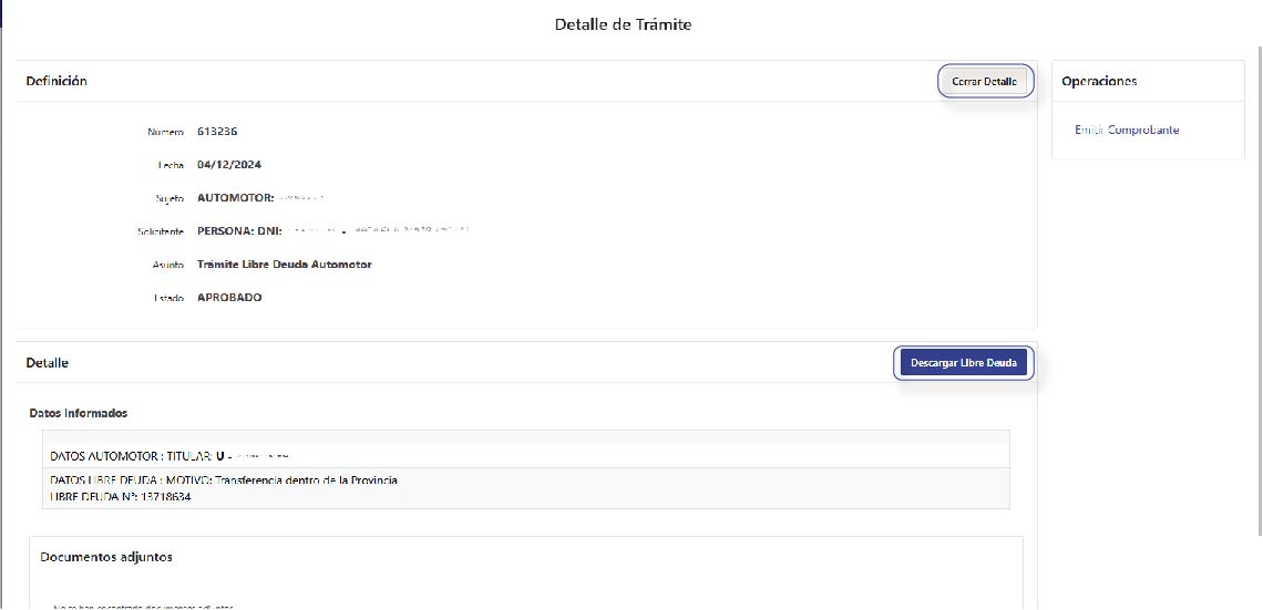 Hacé clic en ‘Descargar libre deuda’ para su descarga; por último, para finalizar, hacé clic en ‘Cerrar detalle’